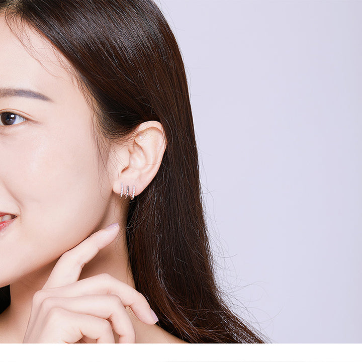 Three-layer silver earrings