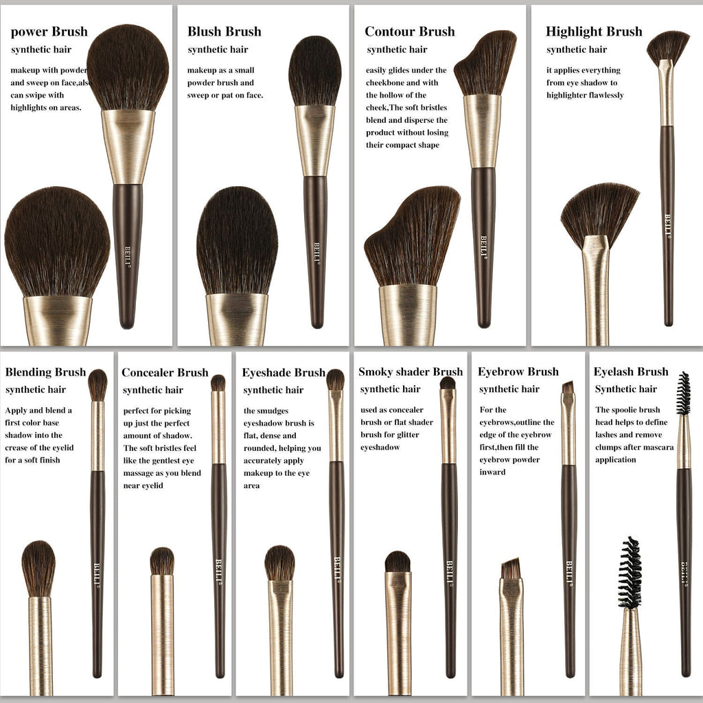 Brush Rod Material: WoodApplicable Types: Concealer, Blush, Eyebrow Pencil, Foundation, Shimmer Eyeshadow, MascaraTypes: Angled Brush, Fan Brush, Smudge Brush, Flat BrushLogo/Image Customization Process: Silk Screen Printing, Transfer Stickers, Labels, Digital PrintingType: SetBrush Head Material: Synthetic FiberUsage Area: FacePlace of Origin: Anhui, ChinaBrand: BEILIModel: MA10Number of Brushes in Set: 10Product Name: Professional Makeup Brush SetColor: Rose GoldMaterial: Synthetic HairFunction: Beauty Cosmetic Tools:Advantages: Accepts Small OrdersHandle: Eco-friendly Wooden HandleQuantity: 110 pieces/setOEM/ODM: AcceptedUsed For: Women's Facial MakeupKeywords: Makeup Brush