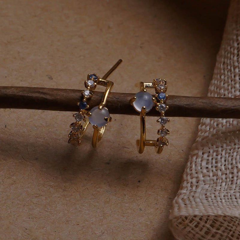 Color Blue Opal Earrings, 925 Silver Pins, Real Gold Plated