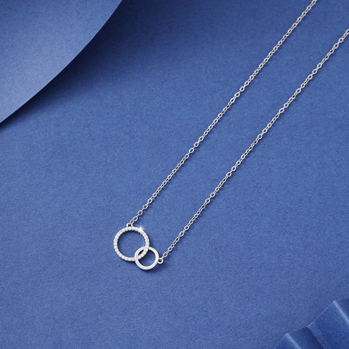 Women's Simple Design Asymmetrical Size Double Ring Clavicle Necklace Versatile